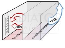Het behoud of verlies van warmteIn bepaalde situaties is er sprake van warmteverlies of juist warmtebehoud. Dat kan het gevolg zijn van juist goede of slechte isolering. Daarom dient u rekening te houden met het volgende. Bij oude of slecht geïsoleerde woningen dient u 15% op te tellen bij de berekende capaciteit. Bij goed geïsoleerde woningen kunt u 10% aftrekken van de door u berekende warmteafgifte.
